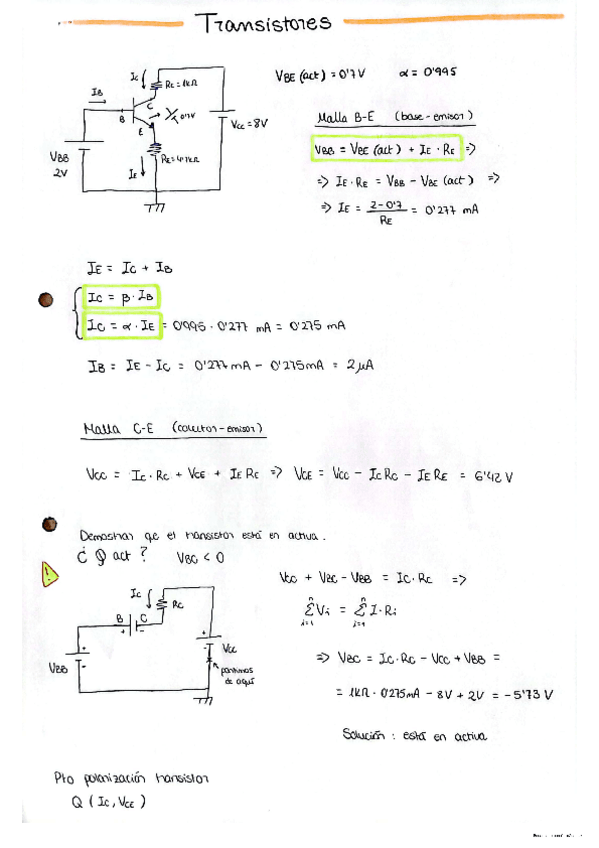 He publicado nuevos ejercicios de 1º Fundamentos de Electrónica: Teoria-y-ejercicios-Transistores.pdf