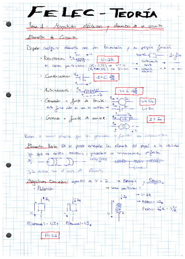 Todas las formulas y conceptos para resolver ejercicios del tema 2 FELEC