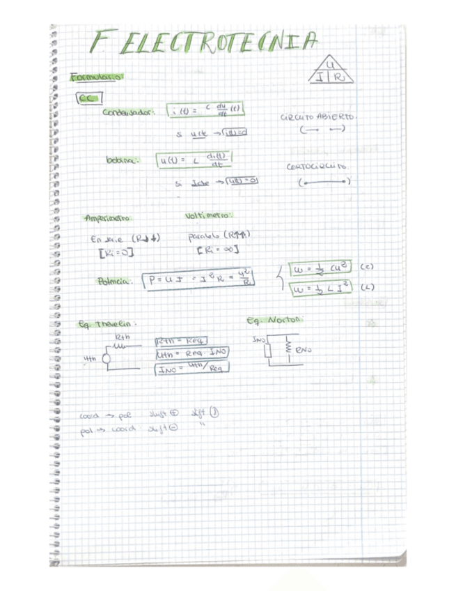 Todas las formulas y conceptos para resolver ejercicios del tema 2 FELEC
