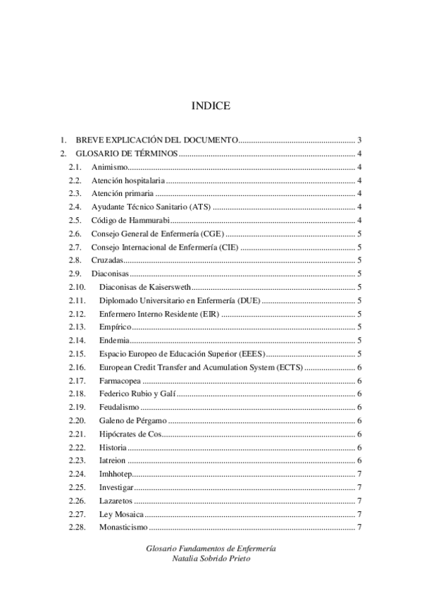 Glosario de natalia sobre el libro "Historia de la Enfermería: evolución histórica del cuidado enfermero"