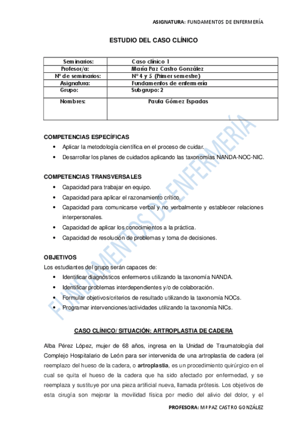 He publicado nuevos practicas de 1º Fundamentos de Enfermería: CASO CLÍNICO 1 - corregido 2022/2023.pdf