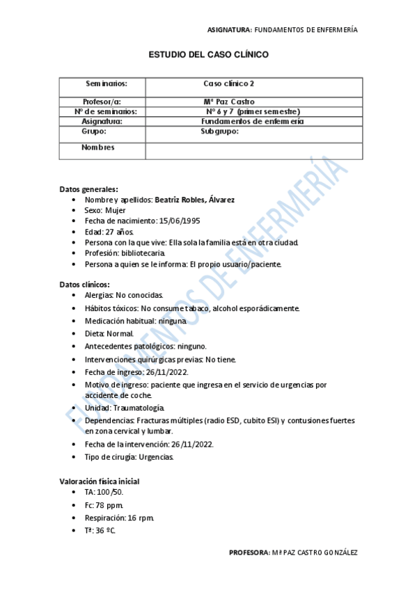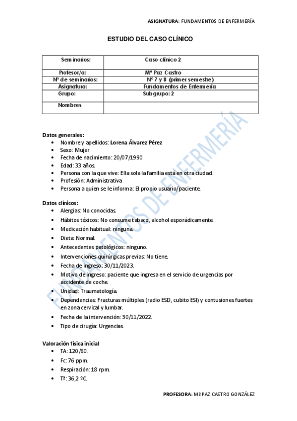 He publicado nuevos practicas de 1º Fundamentos de Enfermería: CASO CLÍNICO 2 - corregido 2022/2023.pdf