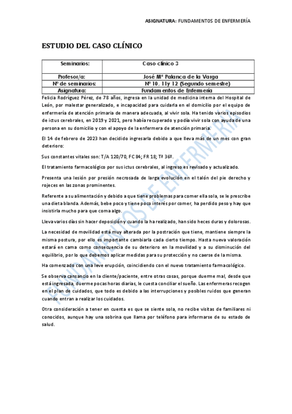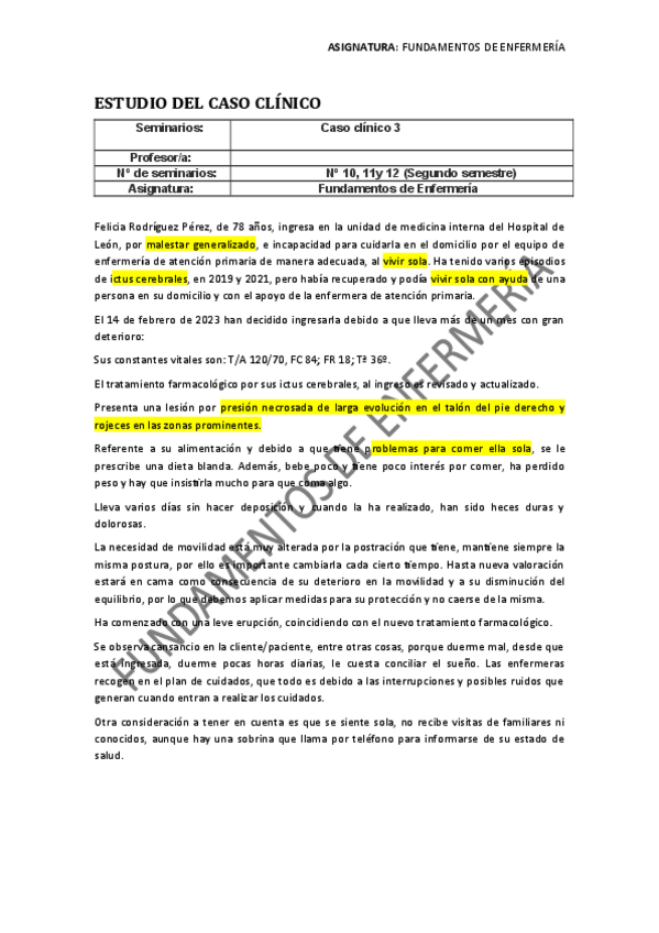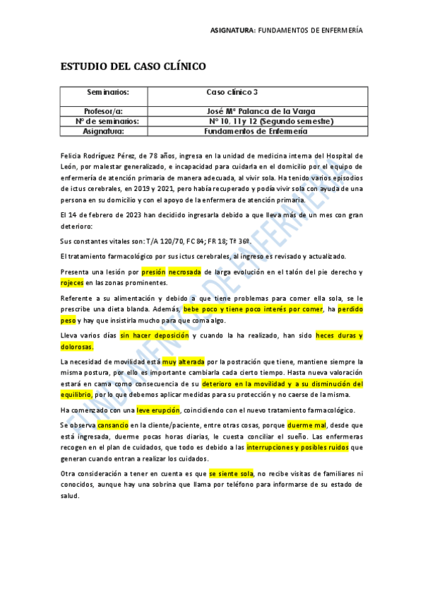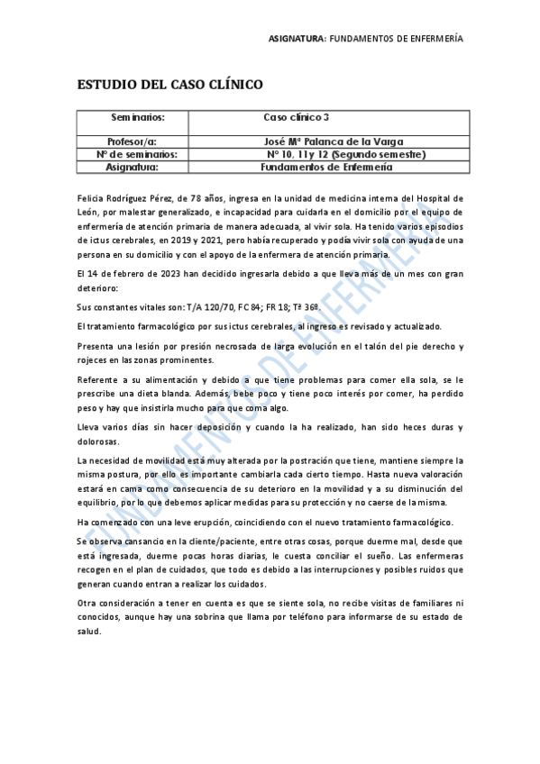 He publicado nuevos practicas de 1º Fundamentos de Enfermería: CASO CLÍNICO 3 - corregido 2022/2023.pdf
