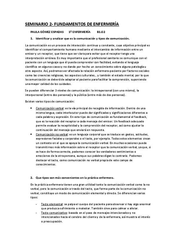 He publicado nuevos practicas de 1º Fundamentos de Enfermería: SEMINARIO 2. Comunicación. 22/23.pdf