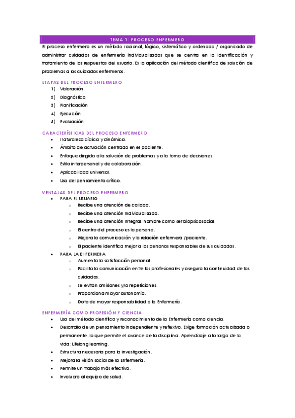Apuntes de enfermería del Proceso Enfermero y cuidados enfermeros en las necesidades