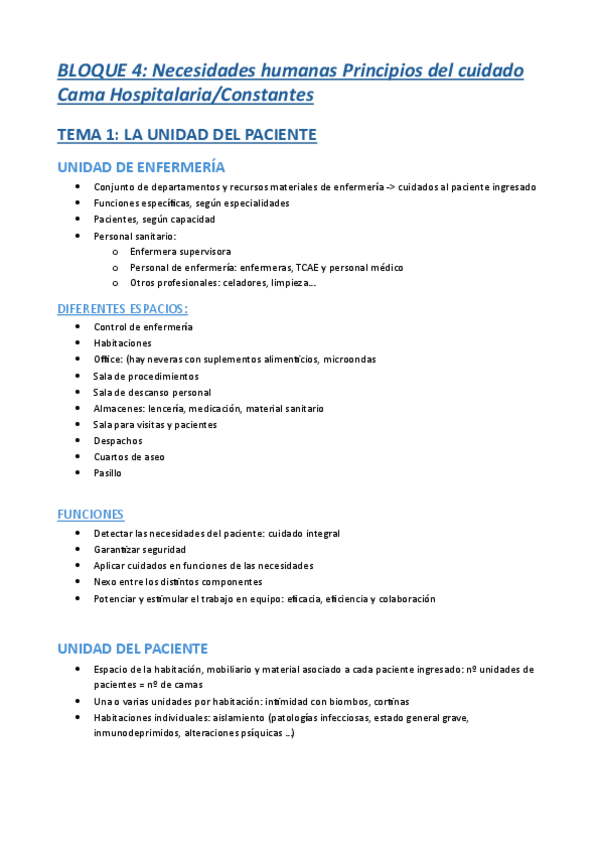 Bloque 1 de fundamentos de enfermería. Documento basado en las diapositivas de la profesora.