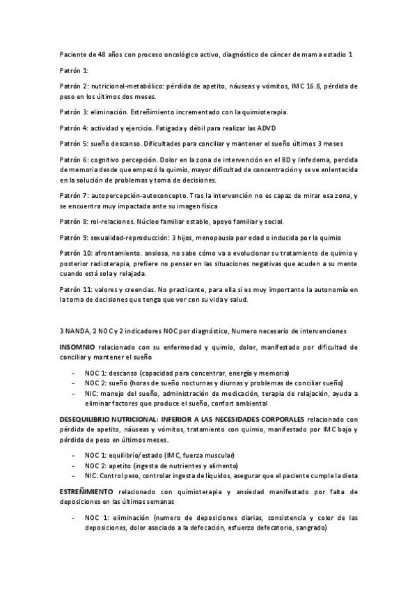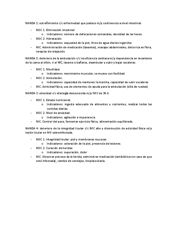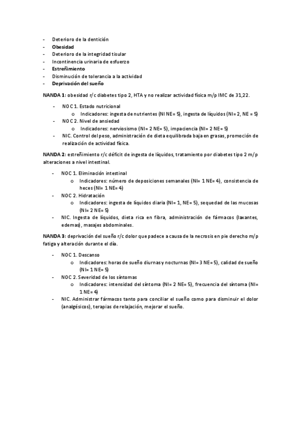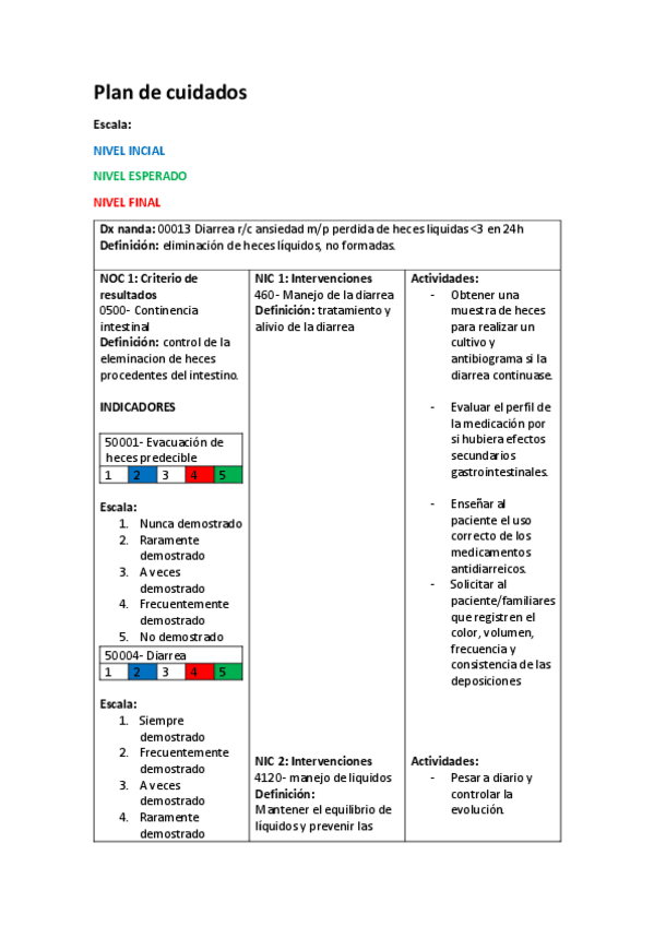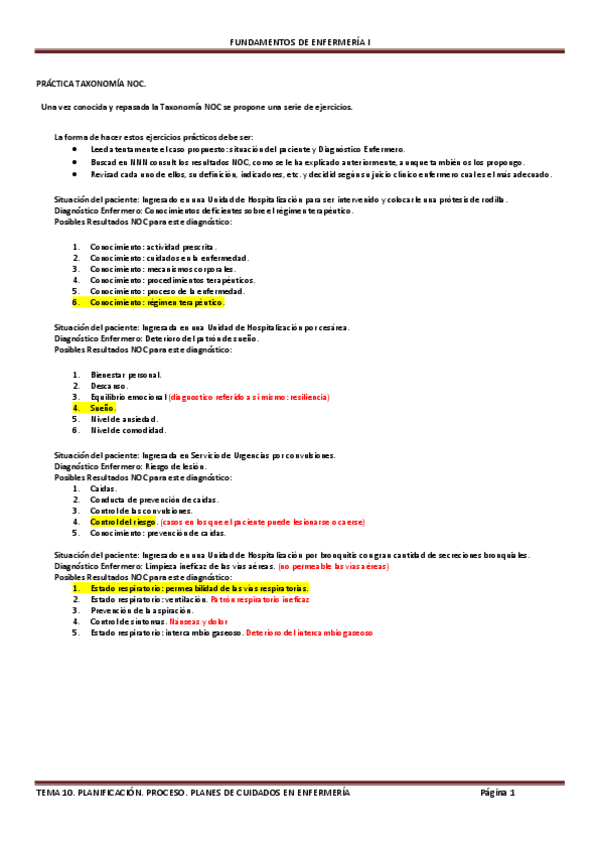 Lo subrayado en amarillo es el diagnostico enfermero, en verde los NOC y en azul nos NIC. Solo es necesario dos NOC (con tres indicadores en cada uno) y dos NIC para cada diagnóstico del caso clínico.