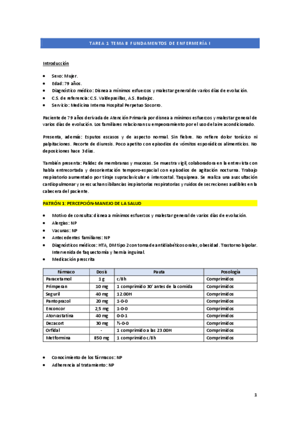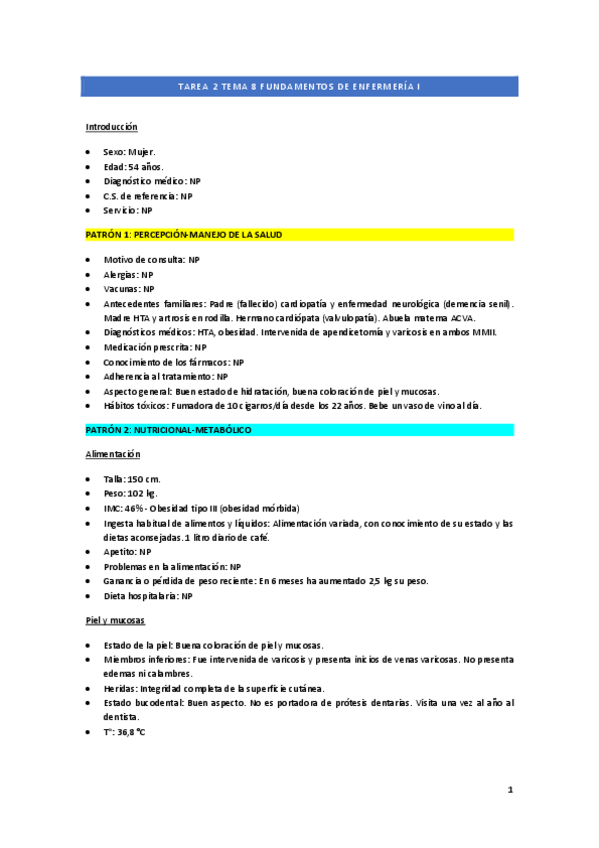 He publicado nuevos ejercicios de 1º Fundamentos de Enfermería I: Tarea-Patrones-Funcionales.pdf