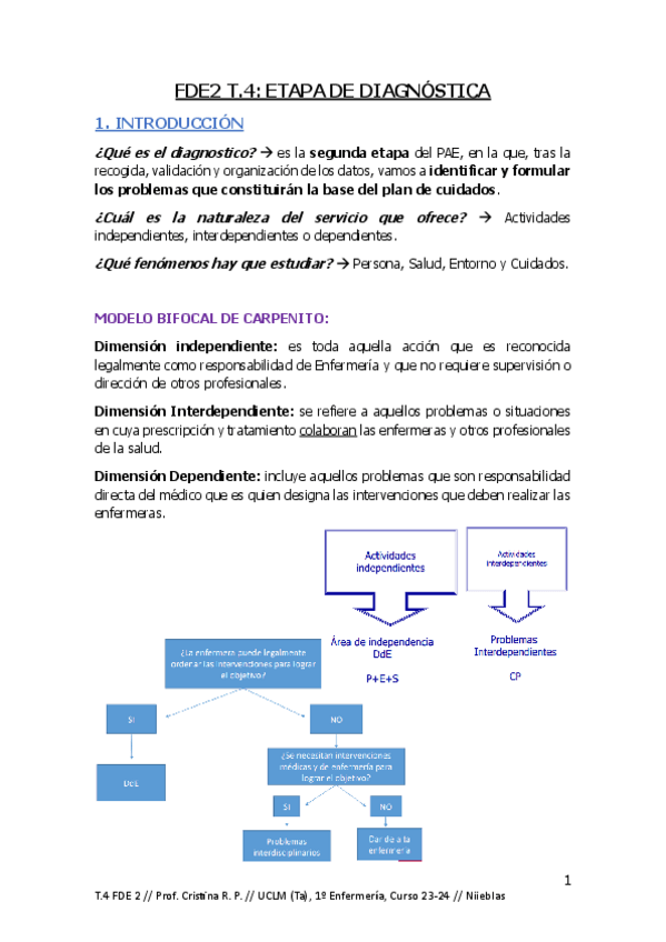 He publicado nuevos apuntes de 1º Fundamentos de Enfermería II: FDE-2-TEMA-22-DIAGNOSTICO-ENFERMERO-22-23.pdf