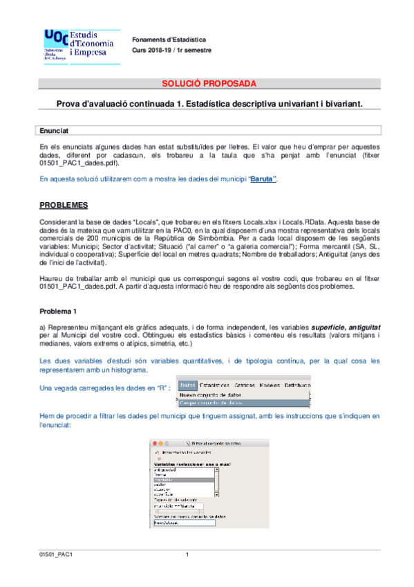 He publicado nuevos pec de 1º Fundamentos de Estadística: Questionari-PAC2.pdf