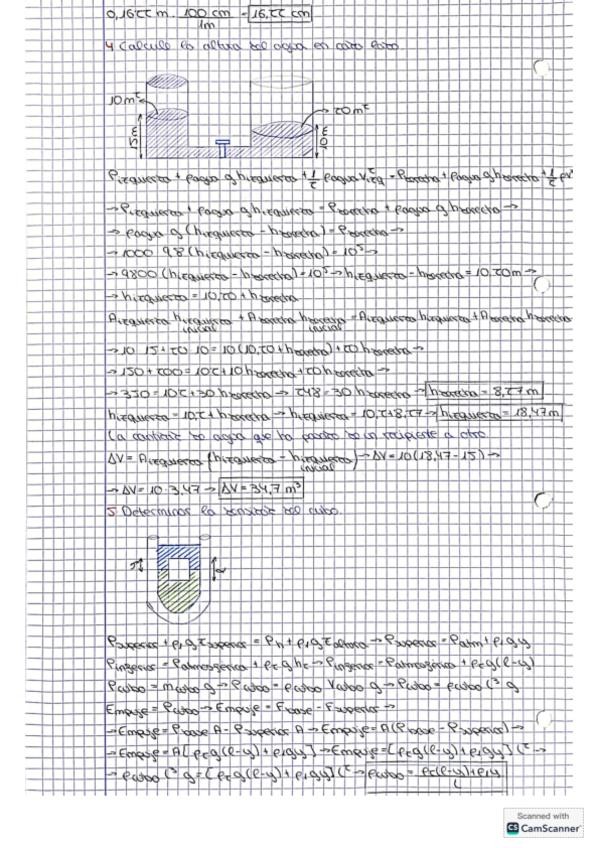 Ejercicios de cinemática, dinámica, trabajo y energía, y de estática y dinámica de fluidos.