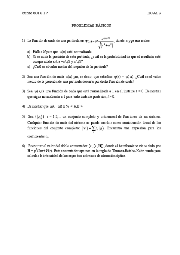 He publicado nuevos ejercicios de 2º Fundamentos de Física Cuántica: Hoja05.pdf