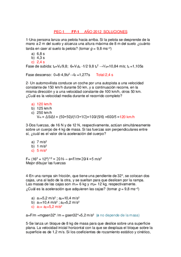 Exámenes Física I RESUELTOS