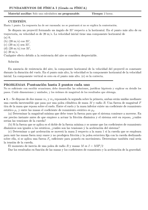 MUY ÚTIL! Exámenes Física I resueltos. Podéis encontrar más en mi perfil. Pincha en el enlace 👇