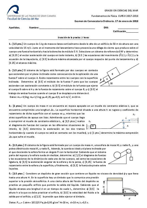 Exámenes FUNDAMENTOS DE FÍSICA