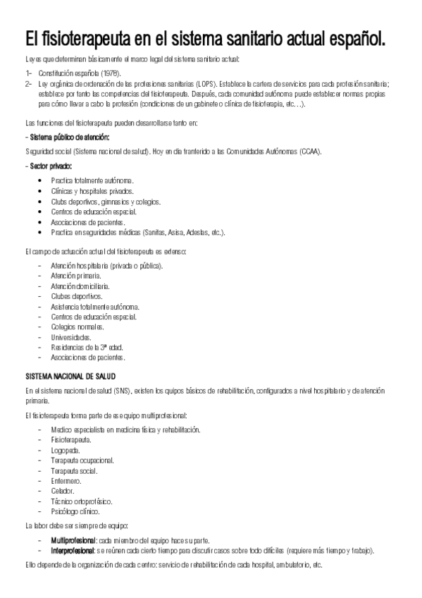 He publicado nuevos apuntes de 1º Fundamentos de Fisioterapia: El fisioterapeuta en el sistema sanitario actual español.pdf
