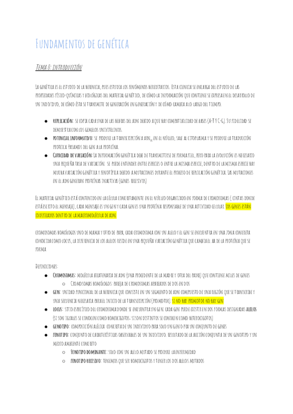 He publicado nuevos apuntes de 1º Fundamentos de Genética: Apuntes y resúmenes