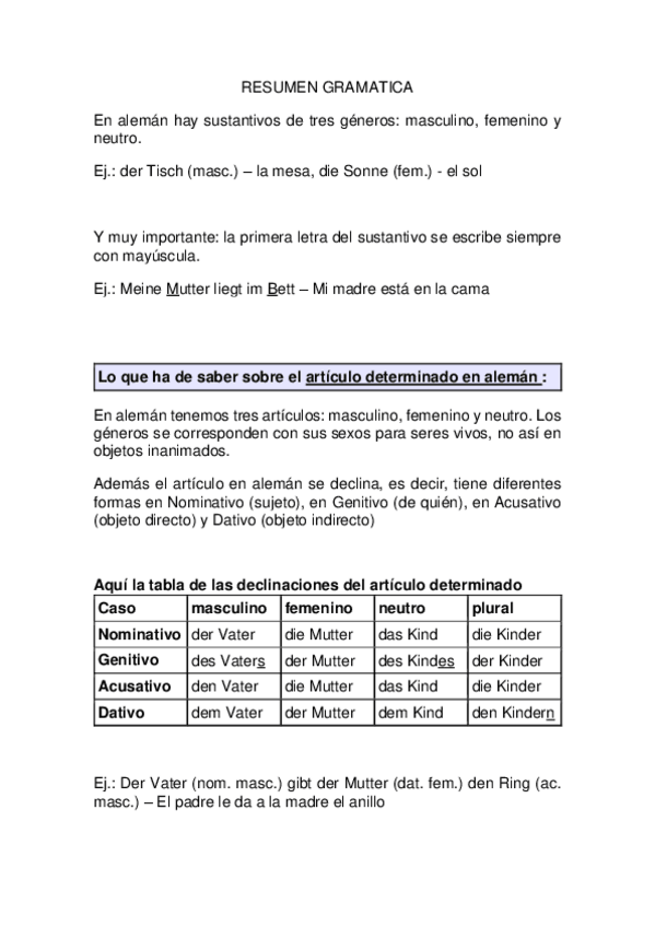 Resumen fundamentos de gramática alemana