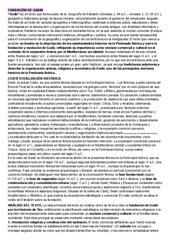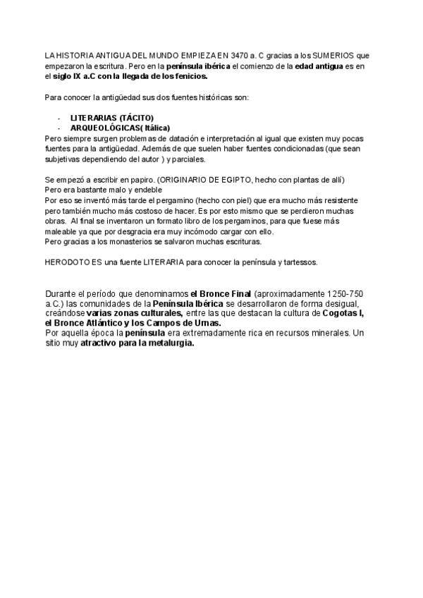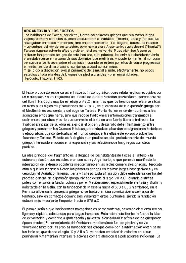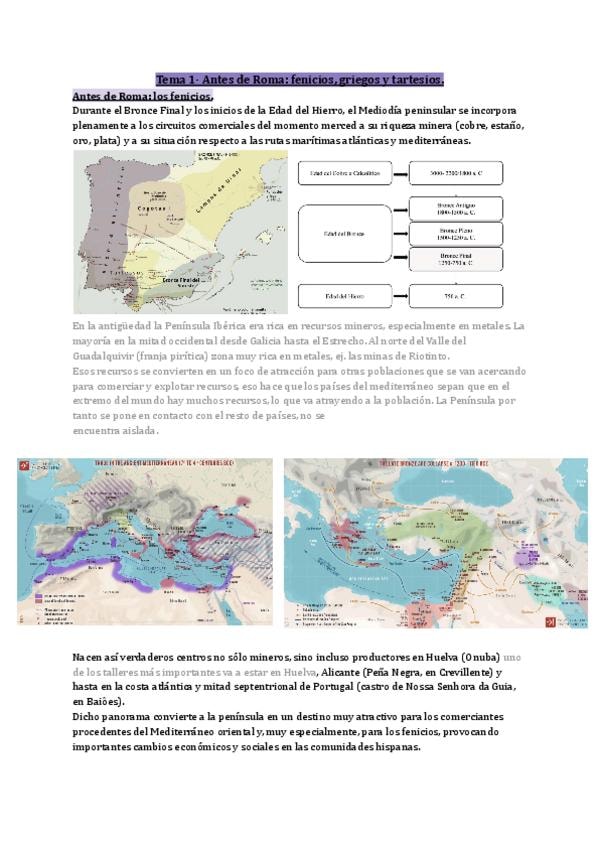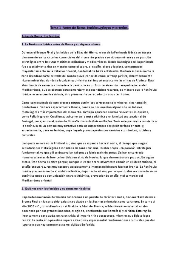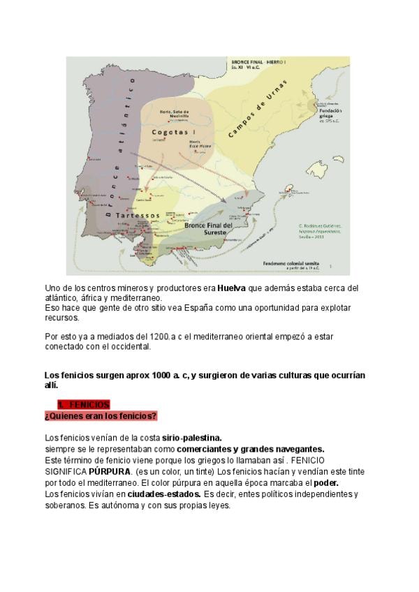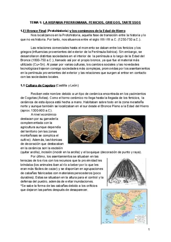 Tema 1 La Hispania Prerromana. Fenicios, Griegos, Tartessos. Contiene la teoría extensa con los apuntes de clase junto con los correspondientes comentarios de texto. Algunos de ellos muestran los puntos que se deben de tratar para realizarlos correctament