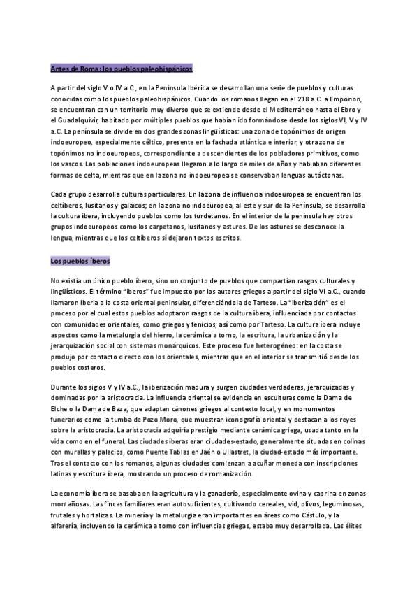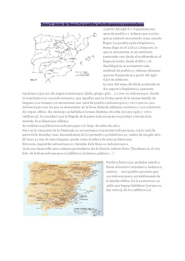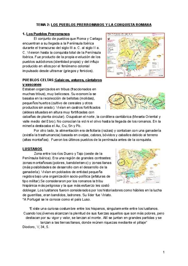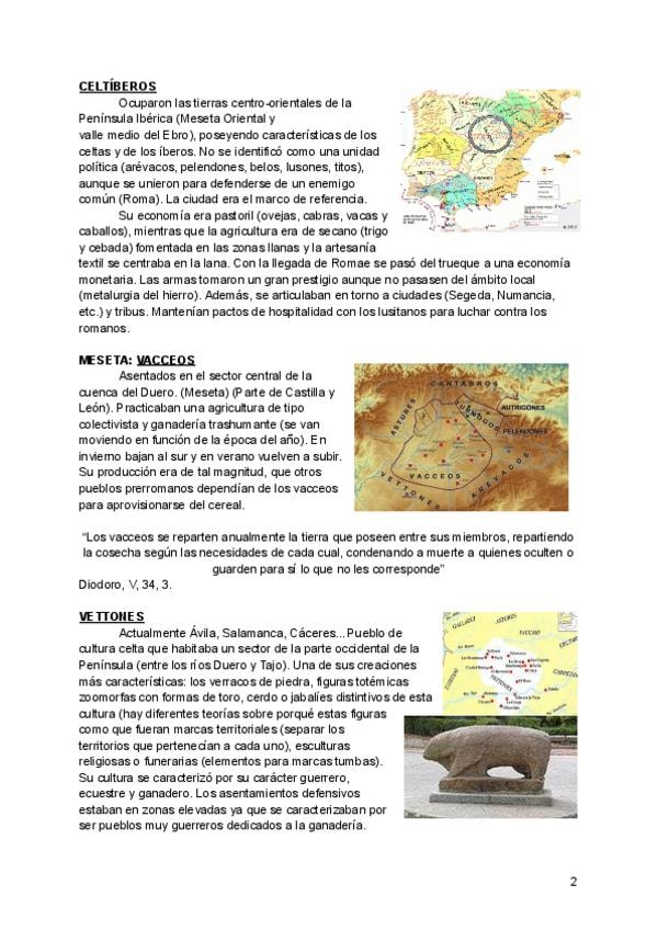 Tema 2, Los Pueblos Prerromanos. Apuntes sobre la teoría de las diapositivas, anotaciones escritas en clase y redacciones de comentarios de textos con las posibles fotos, textos e imágenes que pueden entrar en el parcial