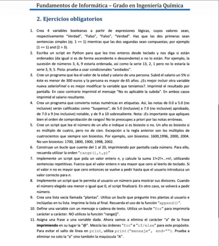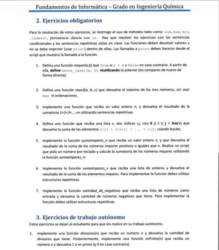Resumen con los posibles ejercicios de programación en python basado en los exámenes de años anteriores.