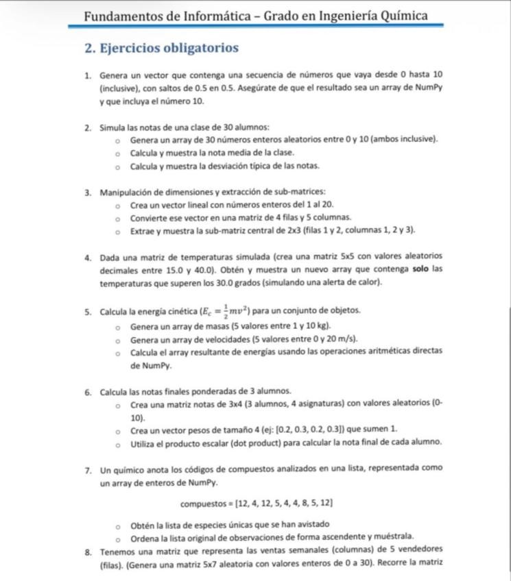 Ejercicios de prácticas de Fundamentos de la Informática de 1º de Ingeniería Química