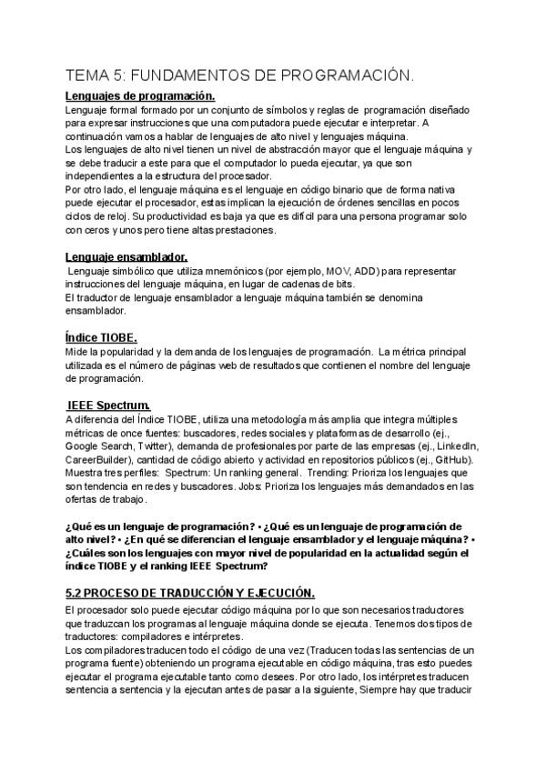 Apuntes tema 5 informática, contiene al final de cada apartado preguntas para que puedas comprobar si sabes lo más importante.