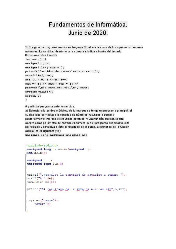 He publicado nuevos examenes de 1º Fundamentos de Informática: Examen Junio 2020