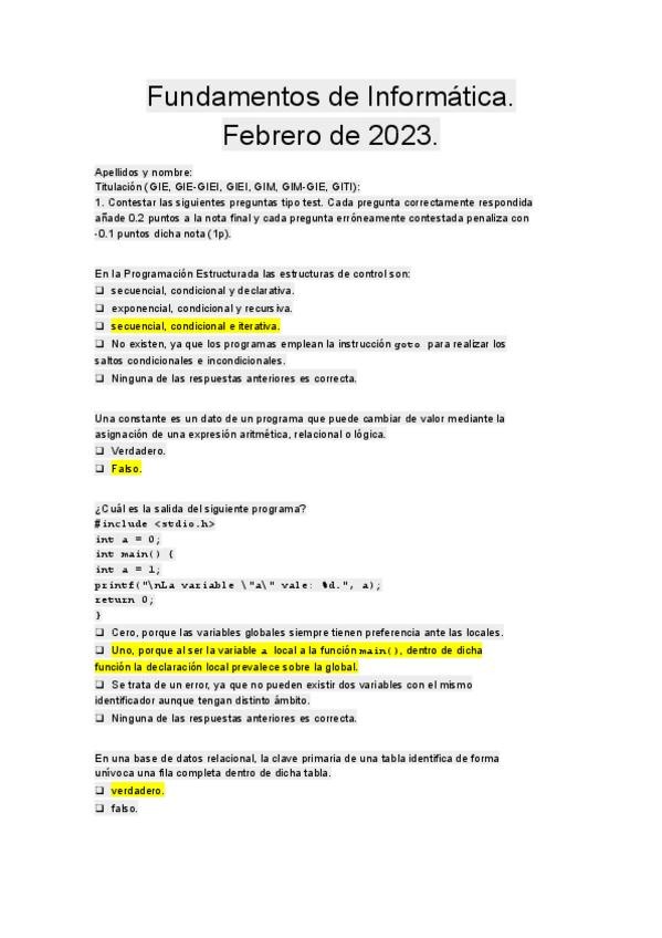 EXAMEN CON SOLUCIONARIO 23-24 DE FUNDAMENTOS DE INFORMÁTICA