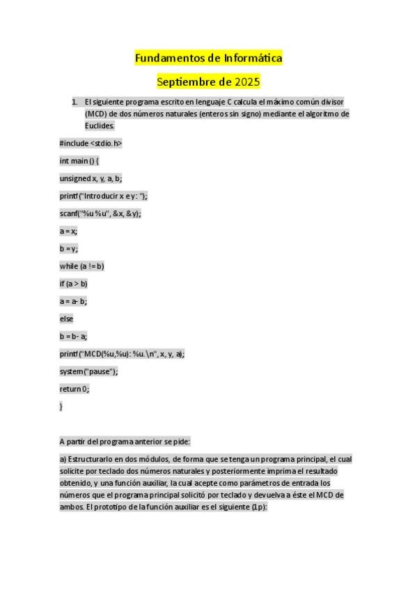 He publicado nuevos examenes de 1º Fundamentos de Informática: Examen Septiembre 2025