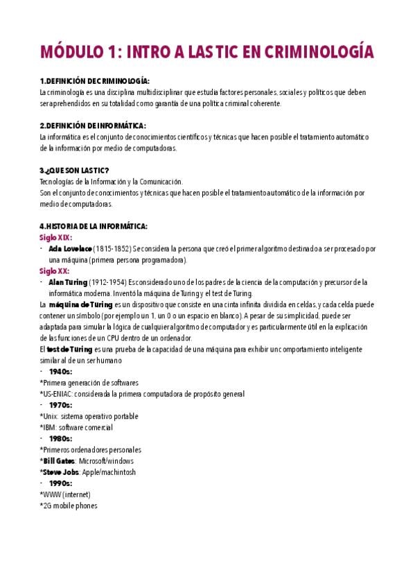 APUNTES PARA EL TEST DE LOS TEMAS 1 Y 2 DE INFORMÁTICA. RESUMEN DE LO FUNDAMENTAL PARA SACAR NOTA EN EL EXAMEN.