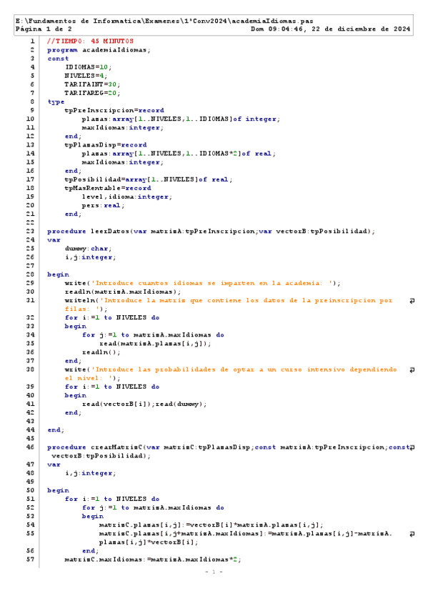 El codigo de la resolucion de los examenes
