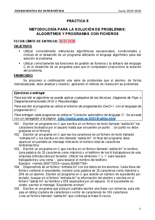 He publicado nuevos practicas de 1º Fundamentos de Informática: P5