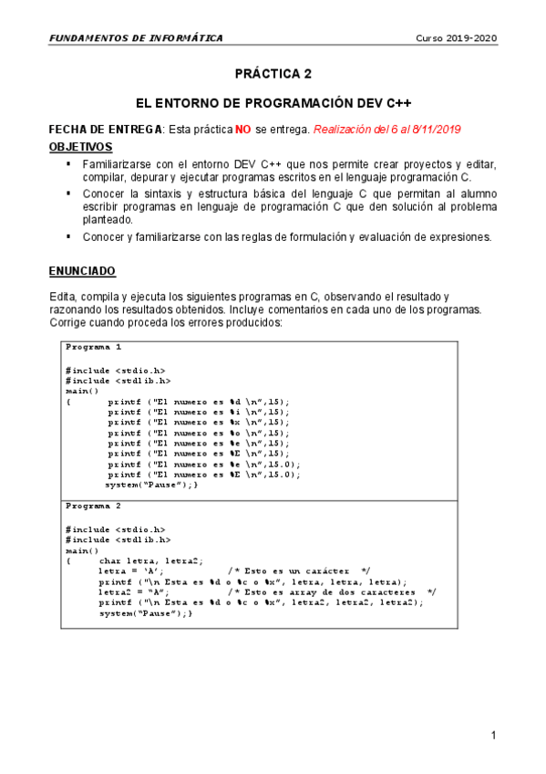 He publicado nuevos practicas de 1º Fundamentos de Informática: P3