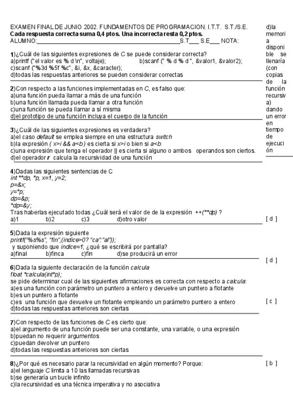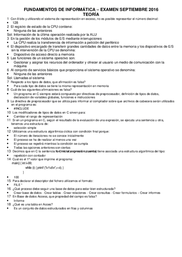 He publicado nuevos test de 1º Fundamentos de Informática: Solución Exámenes 2001 2002