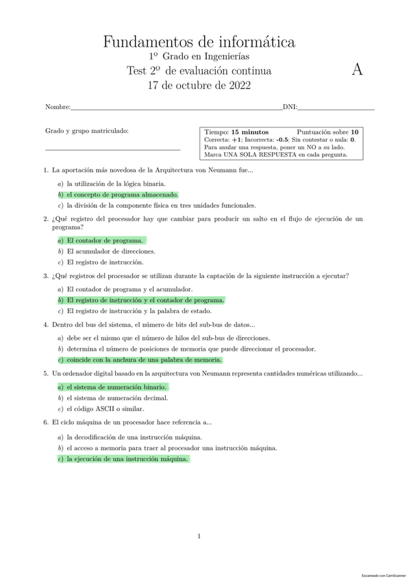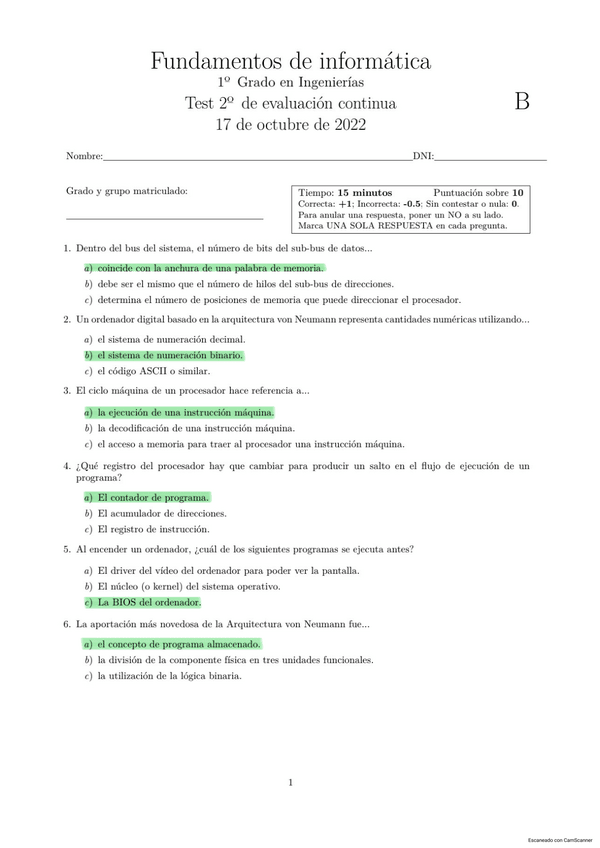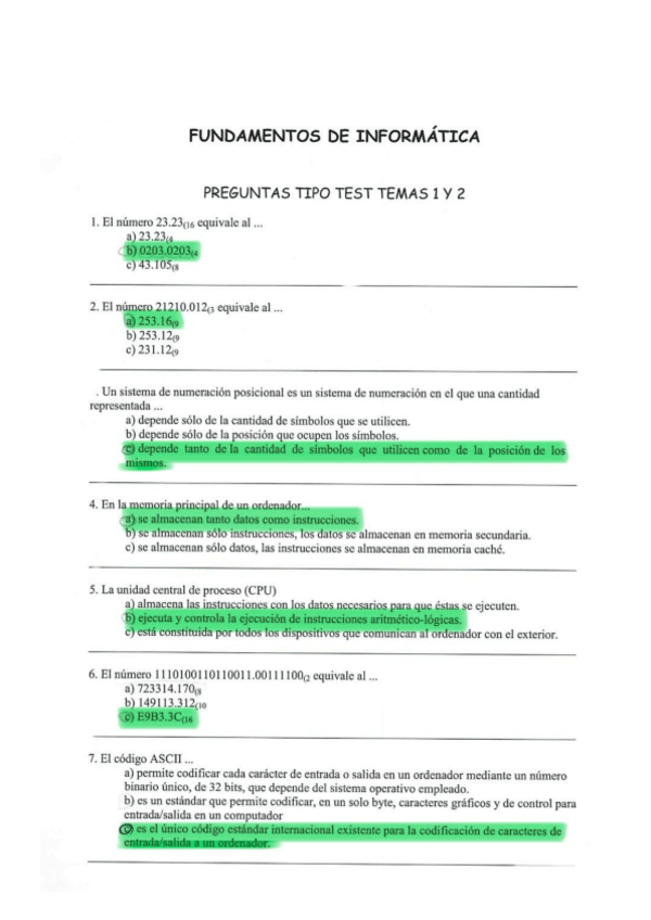 Tests de informática resueltos de años anteriores