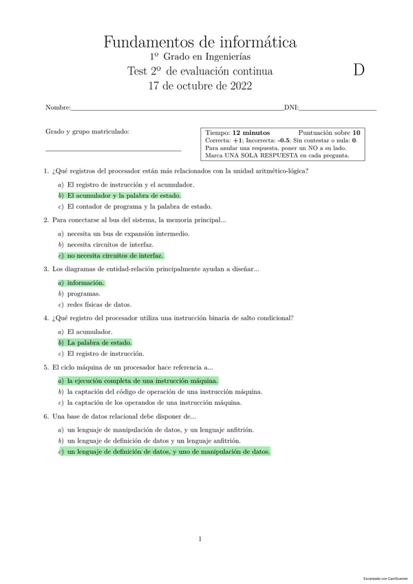 Compendio de tests de informática resueltos de años anteriores
