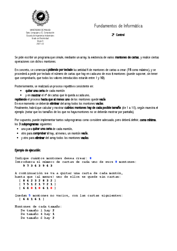 Enunciado de exámenes
