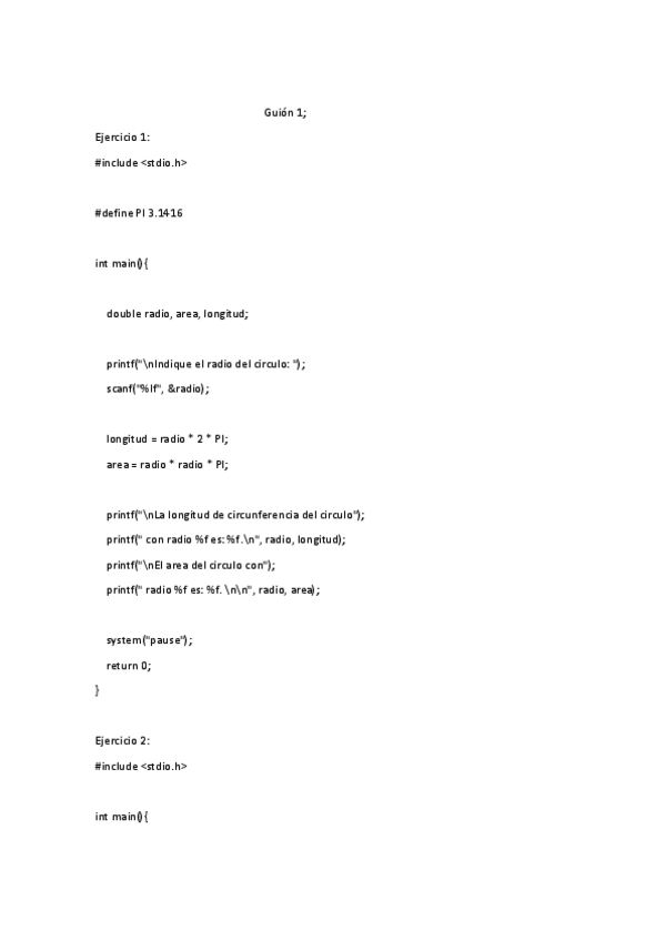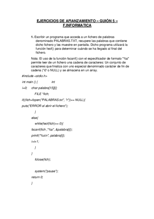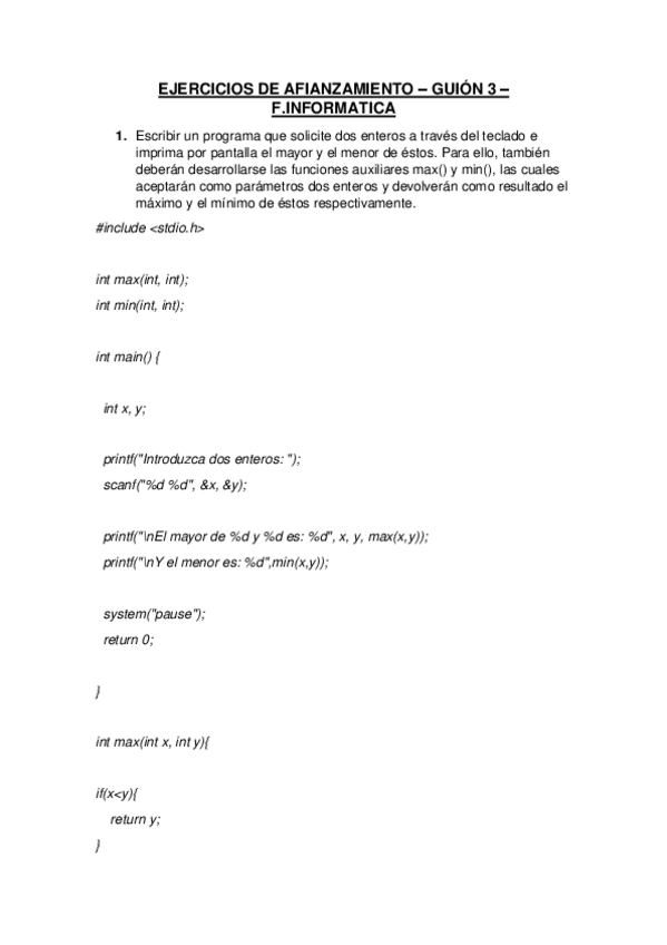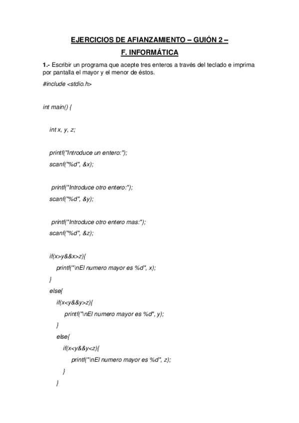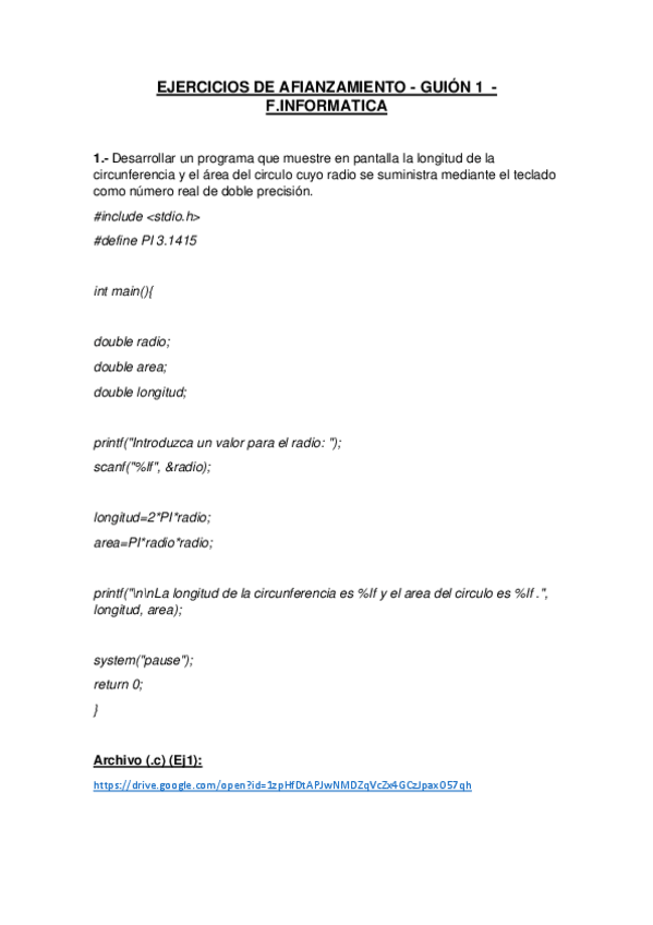 Ejercicios de afianza miento de los guiones. Dentro de los .pdf hay un enlace para descargar los archivos .c