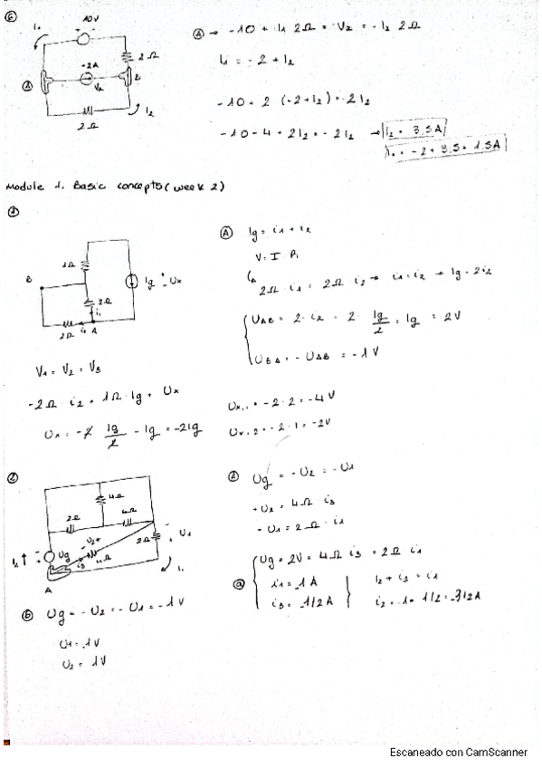 Cálculos hechos y corregidos para los circuitos y resolución de antes de la práctica