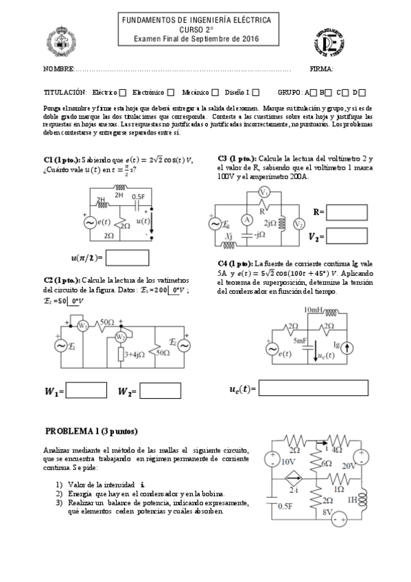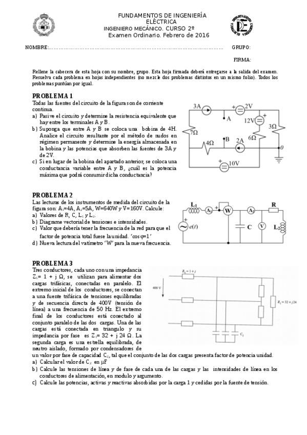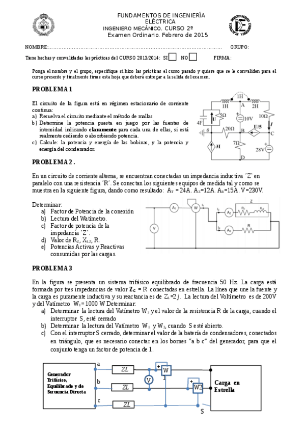 He publicado nuevos examenes de 2º Fundamentos de Ingeniería Eléctrica: Fundamentos de ingeniería eléctrica