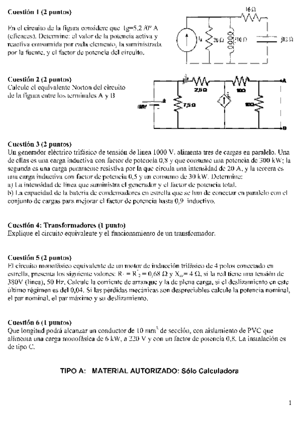 He publicado nuevos examenes de 2º Fundamentos de Ingeniería Eléctrica: Exámenes