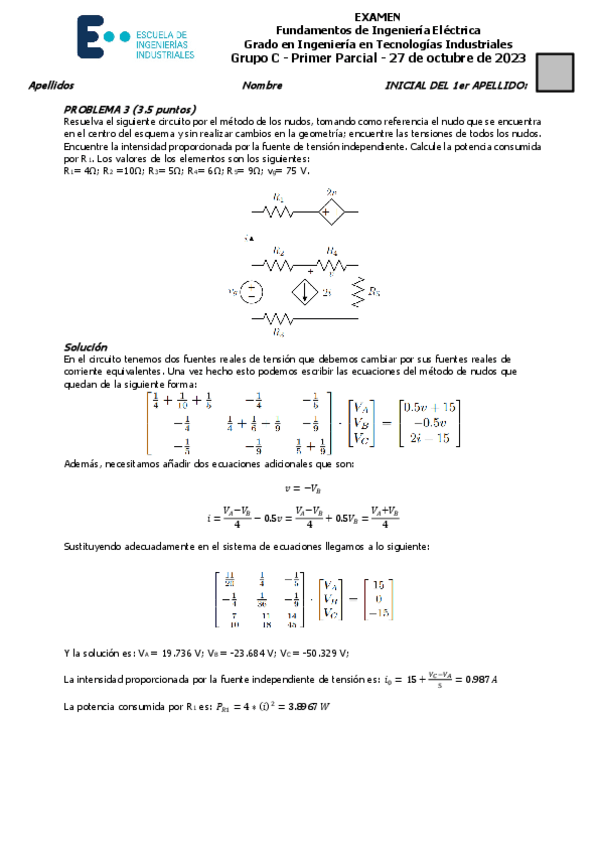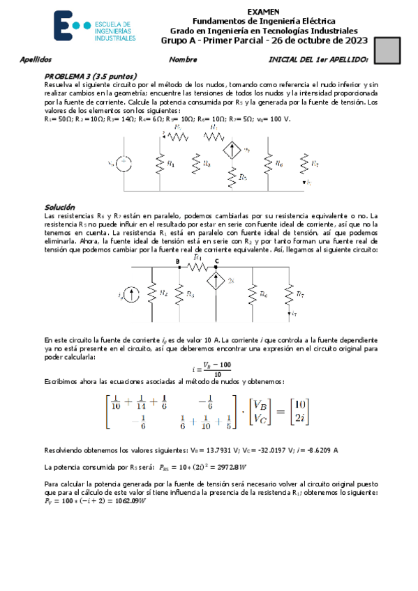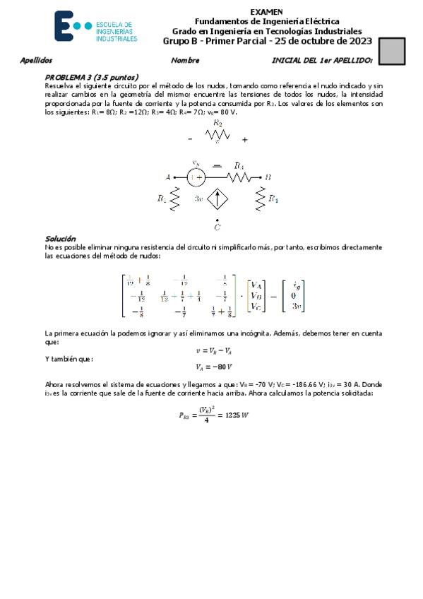 He publicado nuevos examenes de 2º Fundamentos de Ingeniería Eléctrica: Solución primer parcial 2023-24