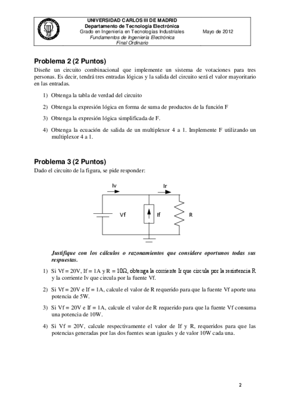 He publicado nuevos examenes de 2º Fundamentos de Ingeniería Electrónica: 2012 Mayo Soluciones.pdf