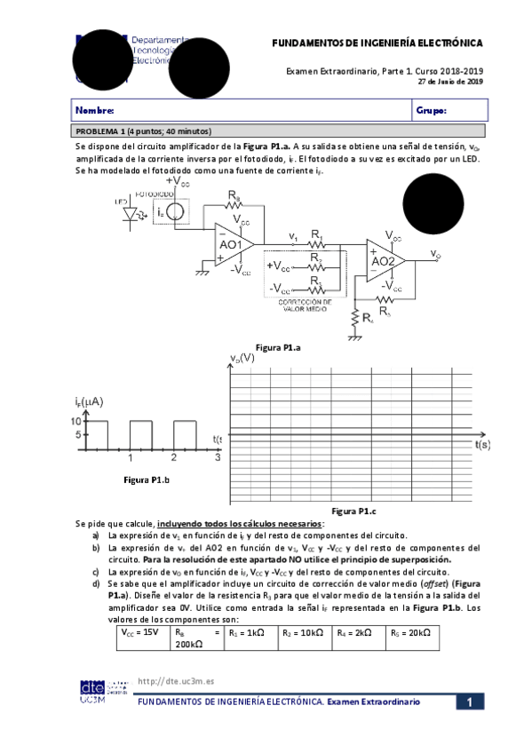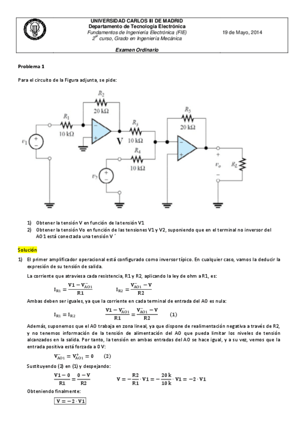 He publicado nuevos examenes de 2º Fundamentos de Ingeniería Electrónica: Examen final 2019 SOLUCIONADO