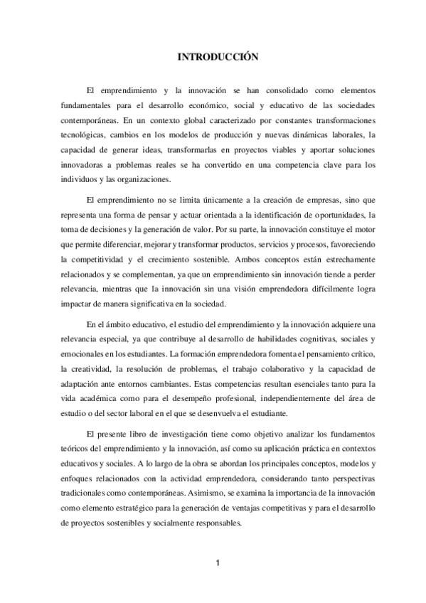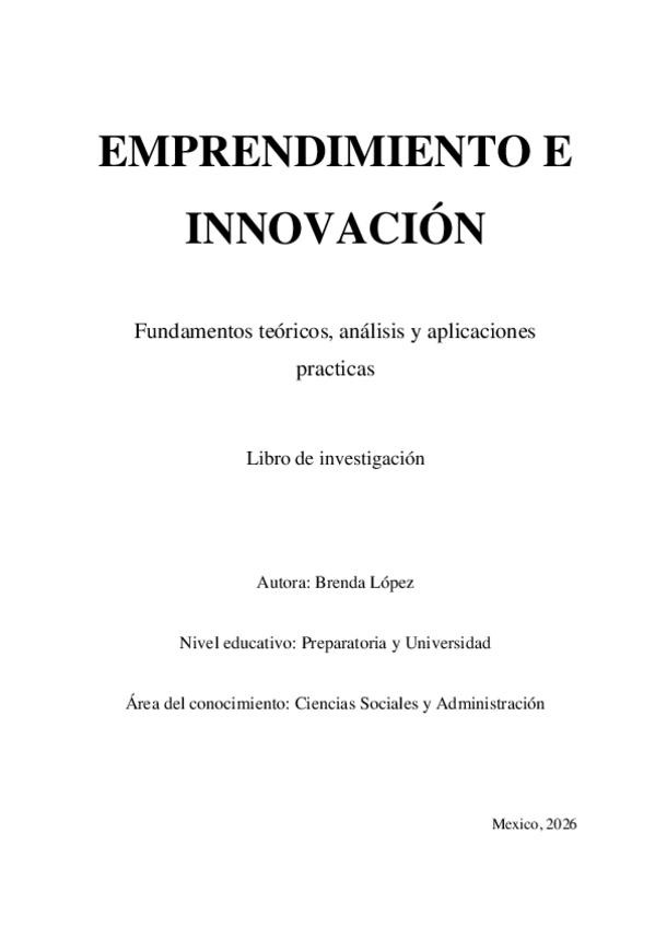 Documento universitario sobre Emprendimiento e Innovación, diseñado para estudiantes de nivel universitario. Incluye: - Conceptos fundamentales de emprendimiento - Técnicas y estrategias de innovación - Conclusiones y referencias confiables