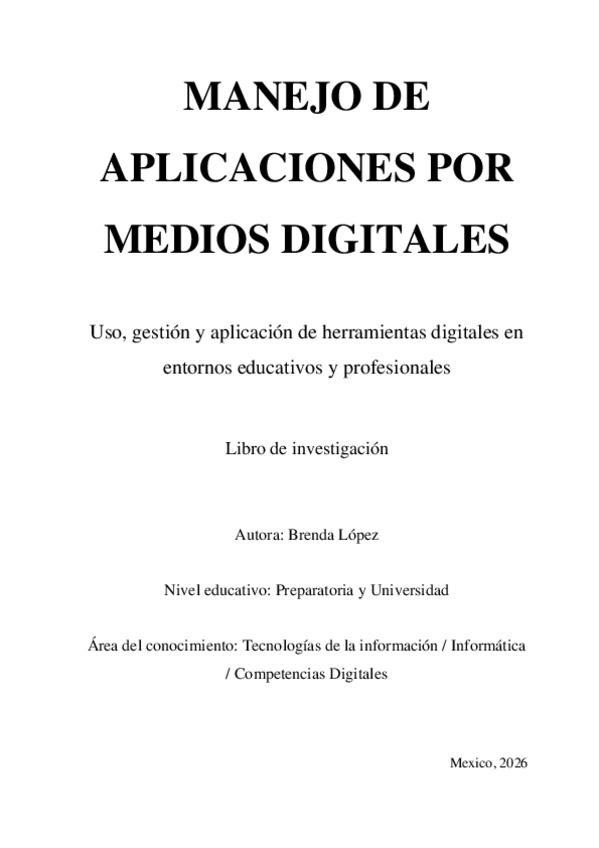 Documento universitario sobre el Manejo de aplicaciones por medios digitales, ideal para estudiantes de Administración y áreas afines. Contenido incluye: Conceptos fundamentales de aplicaciones digitales Teoría y explicación de funcionalidades y usos Aná