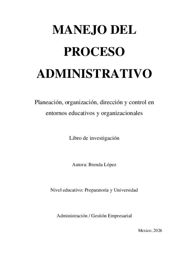 Documento universitario sobre el Manejo de procesos administrativos, ideal para estudiantes de Administración y carreras afines. Contenido incluye: Conceptos y etapas del proceso administrativo Teoría sobre planificación, organización, dirección y contro