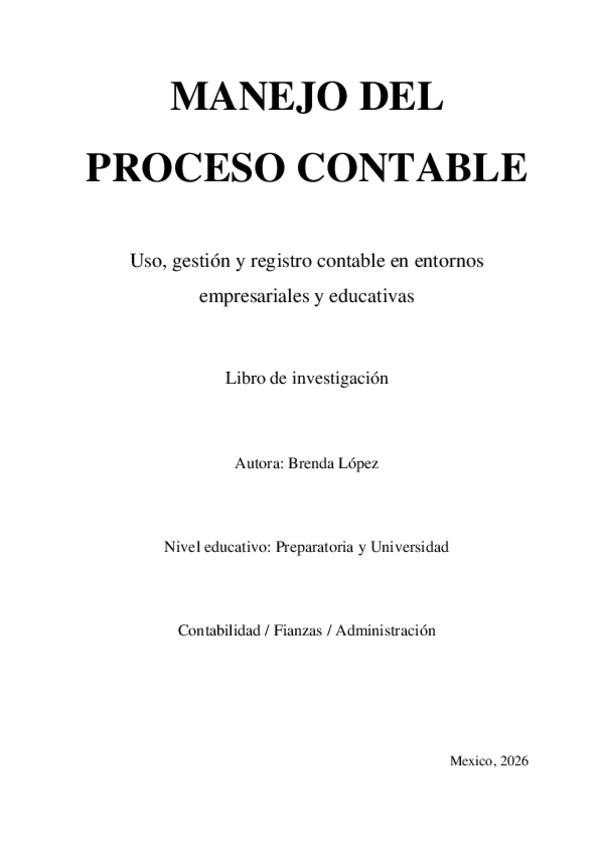 Documento universitario sobre el Manejo de procesos contables, diseñado para estudiantes de Administración y Contabilidad. Contenido incluye: Conceptos y fundamentos contables Teoría del registro y manejo de operaciones financieras Análisis del proceso c