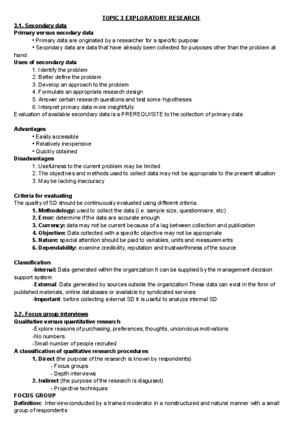 He publicado nuevos apuntes de 3º Fundamentos de Investigación de Mercados: Tema 3 - Investigación exploratoria - Fundamentos de Investigación de Mercados - ADE UV.pdf.pdf